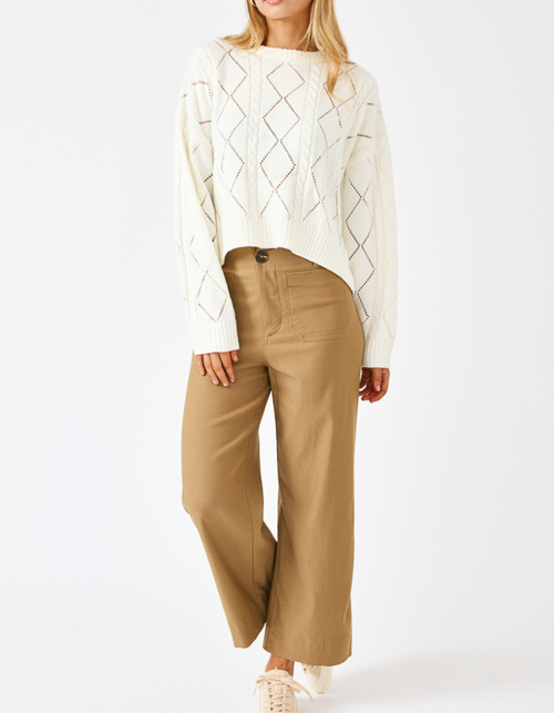 Liora Crew Neck Diamond Knit Jumper in White