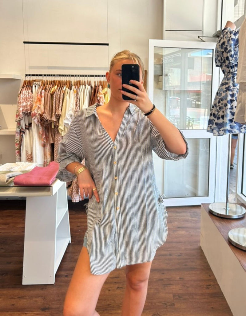 Flinders Oversize Button Down Shirt in Blue Stripe