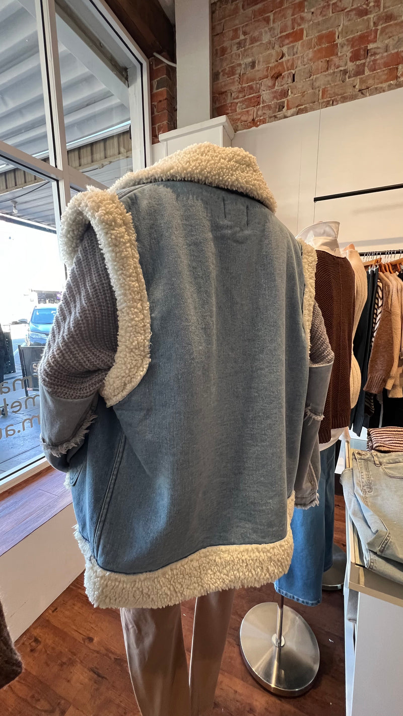 Banks Oversized Teddy Lined Vest in Blue Denim