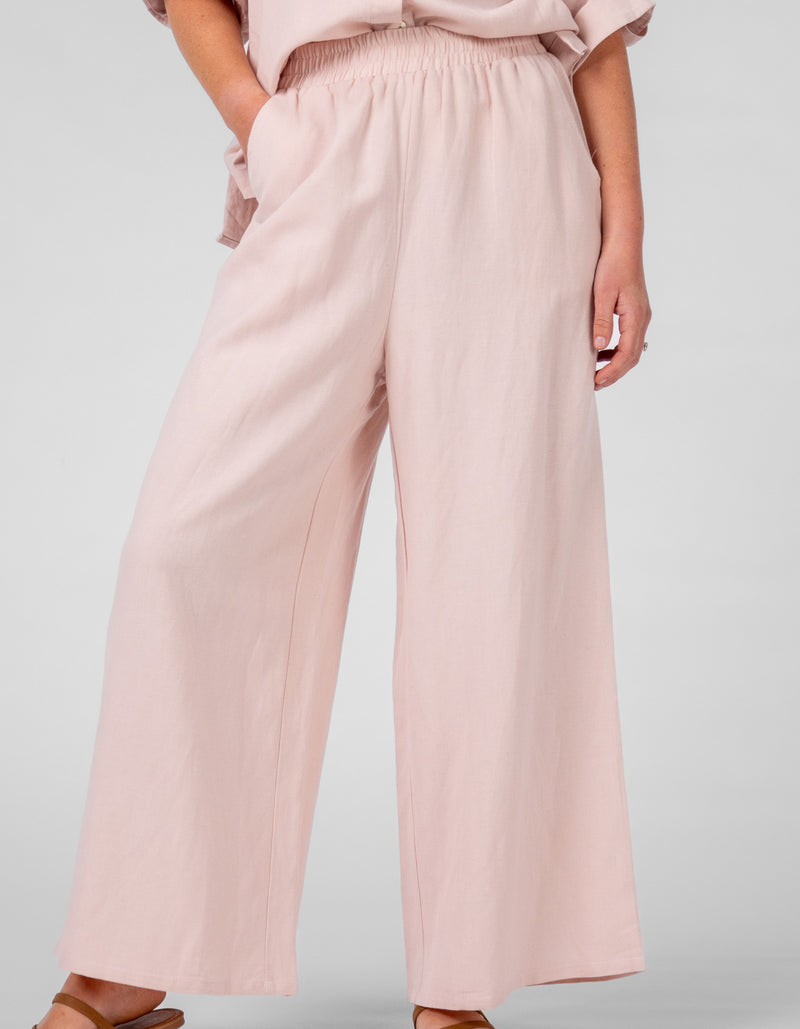 Cali Elastic Back Waist Wide Leg Pants in Beige Linen
