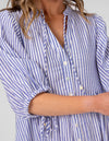 Eliza Button Front V Neck Dress in Blue/White Stripe